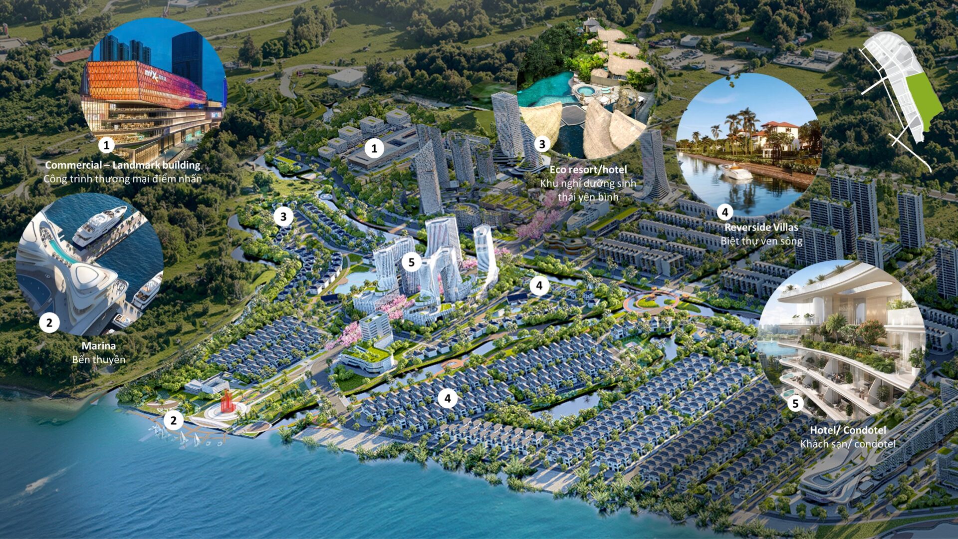 Với tổng diện tích hơn 125ha, trong đó gần 30% diện tích là cây xanh và mặt nước, Khu đô thị du lịch Đại Phước được chia thành bốn phân khu biểu tượng, kể lại câu chuyện văn hóa Nam Bộ bằng ngôn ngữ kiến trúc hiện đại.